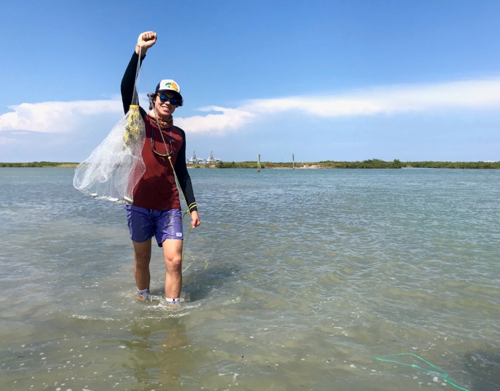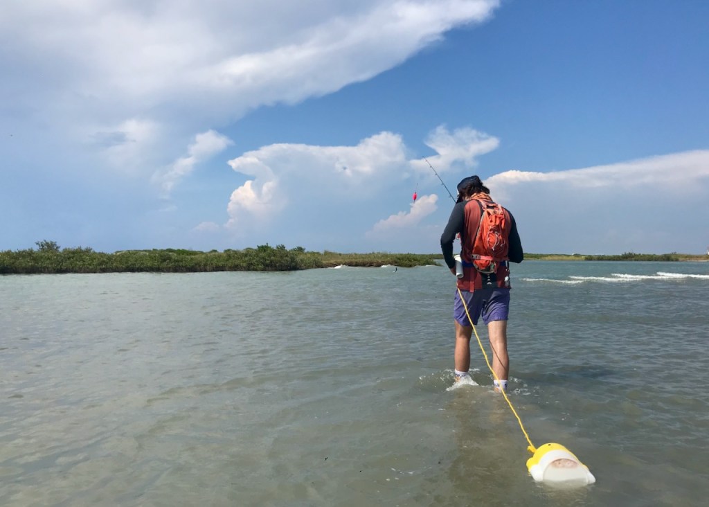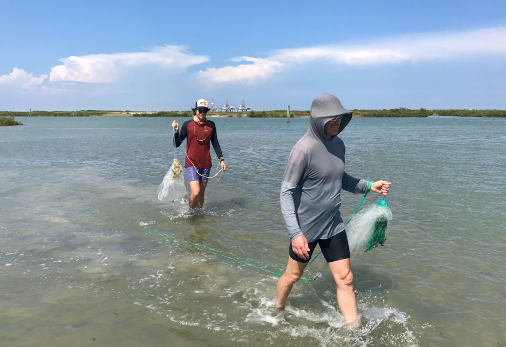 Casting nets and a stroll in the shallows with solid foot wear are required. Best bait fish are mud minnows, pin fish, finger mullet, and piggy perch. Wade fishing in the flats is an awesome way to explore the backside of the island. There are plenty of stingrays, trash fish, crabs and oysters to meander around, so it’s not for everybody.