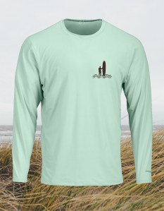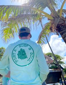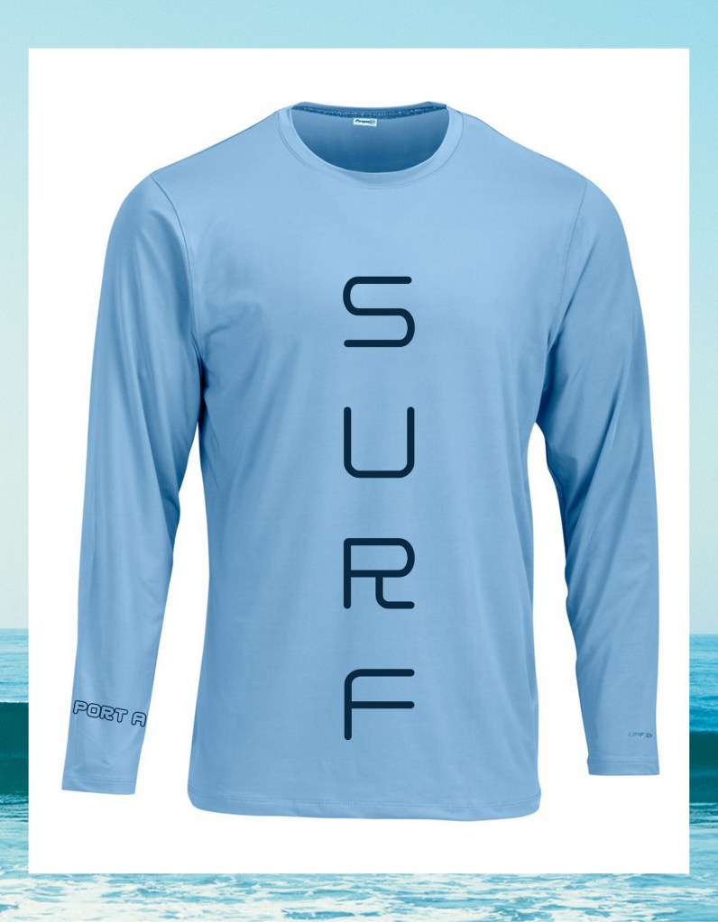 These Port A Surf and Soul shirts provide UPF 50 sun protection and are made of 91% performance polyester and 9% spandex.
