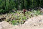 Events at the mountain base drew most of the crowds. The Slopestyle and Dual Slalom competitions featured the world’s best. It was the XGames of mountain bike sports. From 39 year old champion Brian Lopes beating kids half his age to Anthony Messere, just 15, getting air with expressive finesse at slopestyle. There were some gnarly wipeouts but the worst I saw was a dislocated and possibly fractured shoulder. A no hands front flip by Cam McCaul was spectacular and won him 1st place. It takes a special mix of talent to do these tricks.